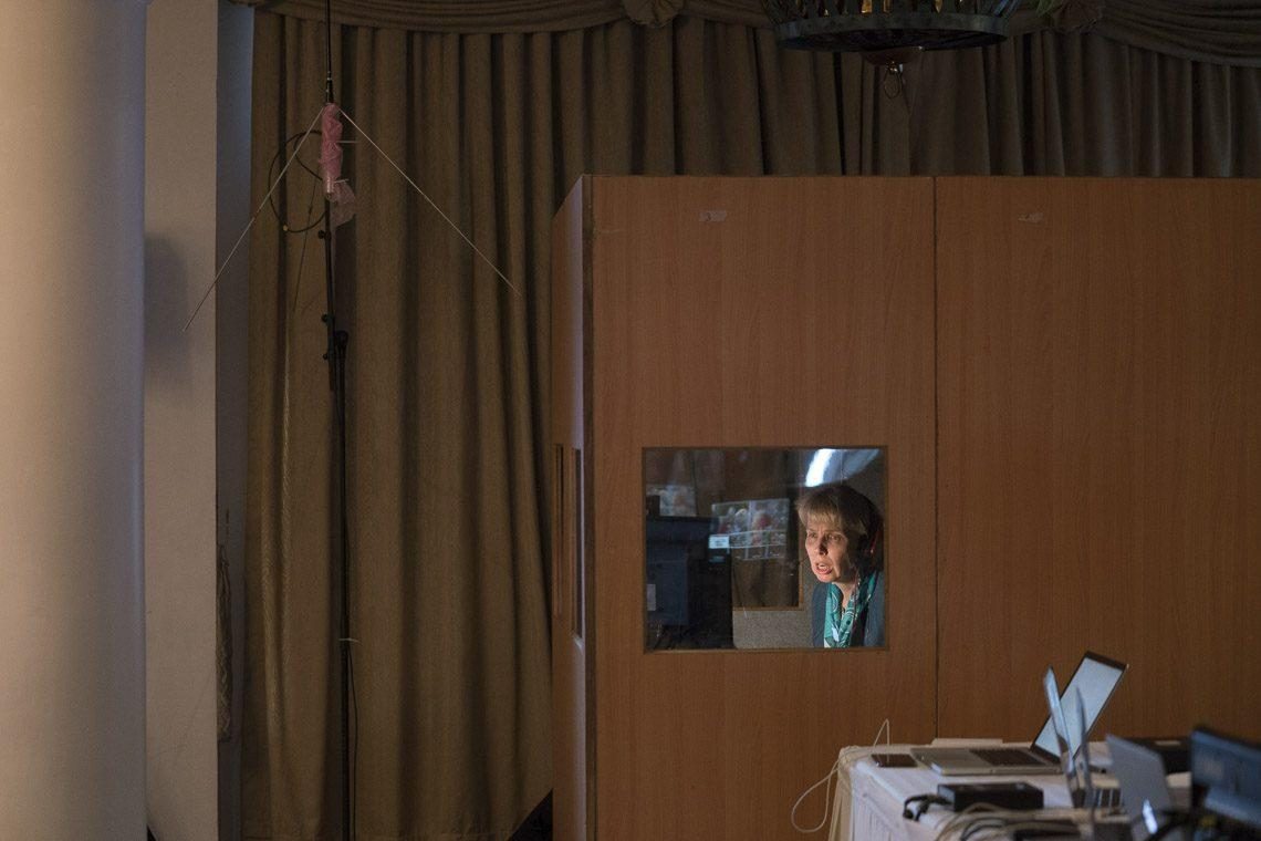 परम पावन दलाई लामा के रूसी वैज्ञानिकों के साथ संवाद के प्रथम दिन रूसी अनुवादक कार्य में लगी हुईं, नई दिल्ली, भारत, अगस्त ७, २०१७ चित्र/तेनज़िन छोजोर/ओएचएचडीएल